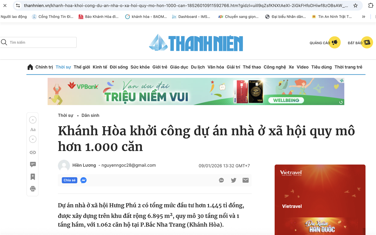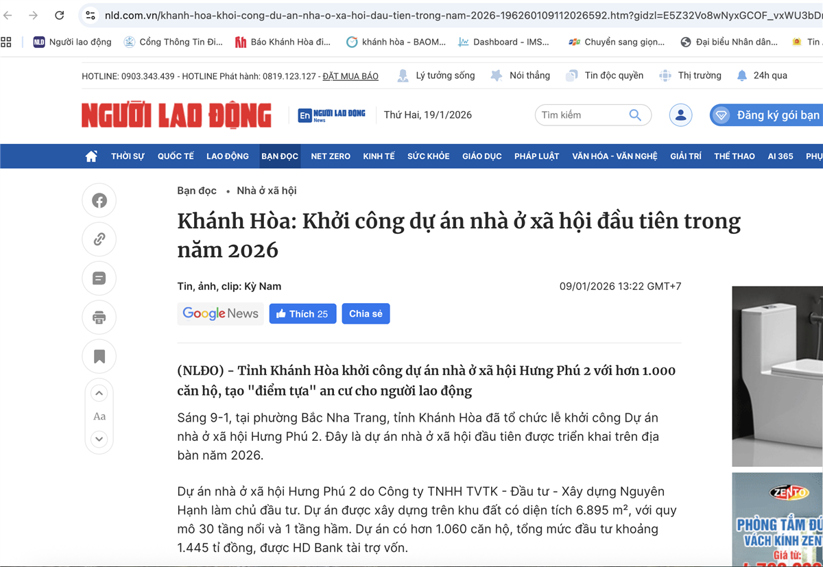 Trong ngày đầu năm 2026, sự kiện Khởi công Nhà ở xã hội Hưng Phú 2 đã thu hút hàng chục tờ báo uy tín của Việt Nam thông tin về dự án.